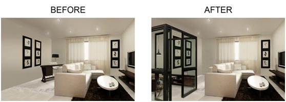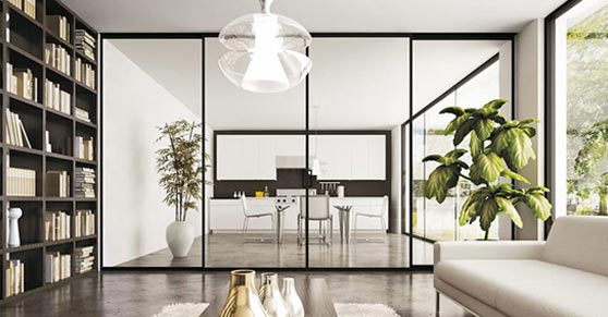 Glass partition walls can also be used in other parts of your house. They are especially complementary to transitional or contemporary decor schemes. Here are a few examples: